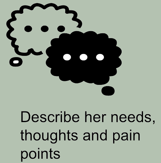 Give your persona some motivation. What are their thoughts and concerns? Challenges and pain points? This is a great way to articulate the problem that you are solving or the opportunity you have to to create value with a specific example.