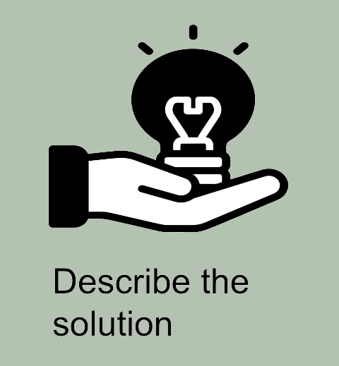 Briefly describe your solution. What is your offering? A mobile app, a feature, a new way of operating, a process improvement, or any way that you provide value. Even your investment in product quality can be the solution!